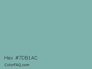 Hex #7db1ac Color is a normal cyan color and the nearest color is Gulf Stream #80b3ae. Hex code #7db1ac and RGB value is rgb(125,177,172). In RGB color space, this color is composed of 49% red, 69% green, 67% blue, In CMYK color space, this color is composed of 29% cyan, 0% magenta, 3% yellow , 31% black , In HSL color space, this color has a hue angle of 174° , 25% saturation and 59% lightness.