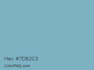 Hex #7db2c3 Color is a light blue color and the nearest color is Glacier #80b3c4. Hex code #7db2c3 and RGB value is rgb(125,178,195). In RGB color space, this color is composed of 49% red, 70% green, 76% blue, In CMYK color space, this color is composed of 36% cyan, 9% magenta, 0% yellow , 24% black , In HSL color space, this color has a hue angle of 195° , 37% saturation and 63% lightness.