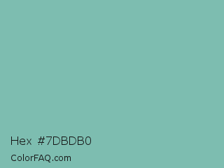 Hex #7dbdb0 Color is a light cyan color and the nearest color is Gulf Stream #80b3ae. Hex code #7dbdb0 and RGB value is rgb(125,189,176). In RGB color space, this color is composed of 49% red, 74% green, 69% blue, In CMYK color space, this color is composed of 34% cyan, 0% magenta, 7% yellow , 26% black , In HSL color space, this color has a hue angle of 168° , 33% saturation and 62% lightness.