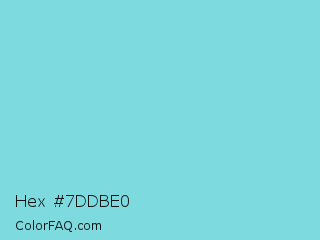 Hex #7ddbe0 Color is a light cyan color and the nearest color is Middle Blue #7ed4e6. Hex code #7ddbe0 and RGB value is rgb(125,219,224). In RGB color space, this color is composed of 49% red, 86% green, 88% blue, In CMYK color space, this color is composed of 44% cyan, 2% magenta, 0% yellow , 12% black , In HSL color space, this color has a hue angle of 183° , 61% saturation and 68% lightness.