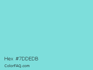 Hex #7ddedb Color is a light cyan color and the nearest color is Aquamarine Blue #71d9e2. Hex code #7ddedb and RGB value is rgb(125,222,219). In RGB color space, this color is composed of 49% red, 87% green, 86% blue, In CMYK color space, this color is composed of 44% cyan, 0% magenta, 1% yellow , 13% black , In HSL color space, this color has a hue angle of 178° , 60% saturation and 68% lightness.