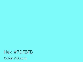 Hex #7dfbfb Color is a light cyan color and the nearest color is Electric Blue #7df9ff. Hex code #7dfbfb and RGB value is rgb(125,251,251). In RGB color space, this color is composed of 49% red, 98% green, 98% blue, In CMYK color space, this color is composed of 50% cyan, 0% magenta, 0% yellow , 2% black , In HSL color space, this color has a hue angle of 180° , 94% saturation and 74% lightness.