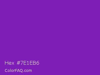 Hex #7e1eb6 Color is a normal purple color and the nearest color is Grape #6f2da8. Hex code #7e1eb6 and RGB value is rgb(126,30,182). In RGB color space, this color is composed of 49% red, 12% green, 71% blue, In CMYK color space, this color is composed of 31% cyan, 84% magenta, 0% yellow , 29% black , In HSL color space, this color has a hue angle of 278° , 72% saturation and 42% lightness.