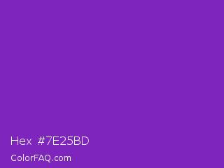 Hex #7e25bd Color is a normal purple color and the nearest color is Purple Heart Crayola #652dc1. Hex code #7e25bd and RGB value is rgb(126,37,189). In RGB color space, this color is composed of 49% red, 15% green, 74% blue, In CMYK color space, this color is composed of 33% cyan, 80% magenta, 0% yellow , 26% black , In HSL color space, this color has a hue angle of 275° , 67% saturation and 44% lightness.