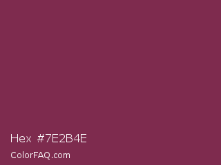 Hex #7e2b4e Color is a normal rose color and the nearest color is Dark Raspberry #872657. Hex code #7e2b4e and RGB value is rgb(126,43,78). In RGB color space, this color is composed of 49% red, 17% green, 31% blue, In CMYK color space, this color is composed of 0% cyan, 66% magenta, 38% yellow , 51% black , In HSL color space, this color has a hue angle of 335° , 49% saturation and 33% lightness.