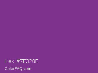 Hex #7e328e Color is a normal purple color and the nearest color is Vivid Violet #803790. Hex code #7e328e and RGB value is rgb(126,50,142). In RGB color space, this color is composed of 49% red, 20% green, 56% blue, In CMYK color space, this color is composed of 11% cyan, 65% magenta, 0% yellow , 44% black , In HSL color space, this color has a hue angle of 290° , 48% saturation and 38% lightness.