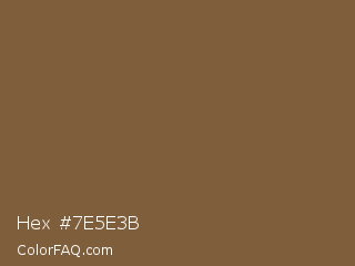 Hex #7e5e3b Color is a normal orange color and the nearest color is Coyote Brown #81613c. Hex code #7e5e3b and RGB value is rgb(126,94,59). In RGB color space, this color is composed of 49% red, 37% green, 23% blue, In CMYK color space, this color is composed of 0% cyan, 25% magenta, 53% yellow , 51% black , In HSL color space, this color has a hue angle of 31° , 36% saturation and 36% lightness.