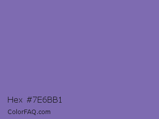 Hex #7e6bb1 Color is a normal indigo color and the nearest color is Deluge #7563a8. Hex code #7e6bb1 and RGB value is rgb(126,107,177). In RGB color space, this color is composed of 49% red, 42% green, 69% blue, In CMYK color space, this color is composed of 29% cyan, 40% magenta, 0% yellow , 31% black , In HSL color space, this color has a hue angle of 256° , 31% saturation and 56% lightness.