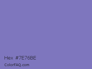 Hex #7e76be Color is a normal indigo color and the nearest color is Ube #8878c3. Hex code #7e76be and RGB value is rgb(126,118,190). In RGB color space, this color is composed of 49% red, 46% green, 75% blue, In CMYK color space, this color is composed of 34% cyan, 38% magenta, 0% yellow , 25% black , In HSL color space, this color has a hue angle of 247° , 36% saturation and 60% lightness.