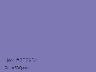 Hex #7e78b4 Color is a normal indigo color and the nearest color is Middle Blue Purple #8b72be. Hex code #7e78b4 and RGB value is rgb(126,120,180). In RGB color space, this color is composed of 49% red, 47% green, 71% blue, In CMYK color space, this color is composed of 30% cyan, 33% magenta, 0% yellow , 29% black , In HSL color space, this color has a hue angle of 246° , 29% saturation and 59% lightness.