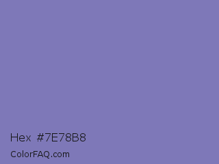 Hex #7e78b8 Color is a normal indigo color and the nearest color is Ube #8878c3. Hex code #7e78b8 and RGB value is rgb(126,120,184). In RGB color space, this color is composed of 49% red, 47% green, 72% blue, In CMYK color space, this color is composed of 32% cyan, 35% magenta, 0% yellow , 28% black , In HSL color space, this color has a hue angle of 246° , 31% saturation and 60% lightness.