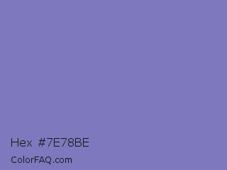 Hex #7e78be Color is a light indigo color and the nearest color is Ube #8878c3. Hex code #7e78be and RGB value is rgb(126,120,190). In RGB color space, this color is composed of 49% red, 47% green, 75% blue, In CMYK color space, this color is composed of 34% cyan, 37% magenta, 0% yellow , 25% black , In HSL color space, this color has a hue angle of 245° , 35% saturation and 61% lightness.