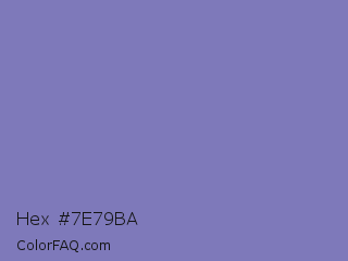 Hex #7e79ba Color is a normal indigo color and the nearest color is Ube #8878c3. Hex code #7e79ba and RGB value is rgb(126,121,186). In RGB color space, this color is composed of 49% red, 47% green, 73% blue, In CMYK color space, this color is composed of 32% cyan, 35% magenta, 0% yellow , 27% black , In HSL color space, this color has a hue angle of 245° , 32% saturation and 60% lightness.