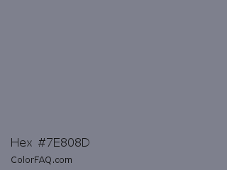Hex #7e808d Color is a normal blue color and the nearest color is Waterloo #7b7c94. Hex code #7e808d and RGB value is rgb(126,128,141). In RGB color space, this color is composed of 49% red, 50% green, 55% blue, In CMYK color space, this color is composed of 11% cyan, 9% magenta, 0% yellow , 45% black , In HSL color space, this color has a hue angle of 232° , 6% saturation and 52% lightness.