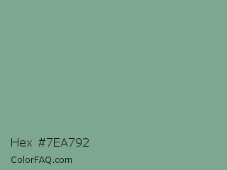 Hex #7ea792 Color is a normal green color and the nearest color is Bay Leaf #7da98d. Hex code #7ea792 and RGB value is rgb(126,167,146). In RGB color space, this color is composed of 49% red, 65% green, 57% blue, In CMYK color space, this color is composed of 25% cyan, 0% magenta, 13% yellow , 35% black , In HSL color space, this color has a hue angle of 149° , 19% saturation and 57% lightness.