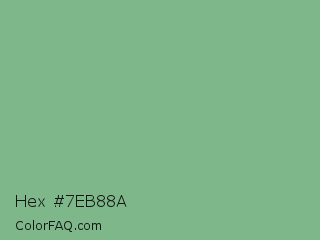 Hex #7eb88a Color is a light green color and the nearest color is De York #7ac488. Hex code #7eb88a and RGB value is rgb(126,184,138). In RGB color space, this color is composed of 49% red, 72% green, 54% blue, In CMYK color space, this color is composed of 32% cyan, 0% magenta, 25% yellow , 28% black , In HSL color space, this color has a hue angle of 132° , 29% saturation and 61% lightness.