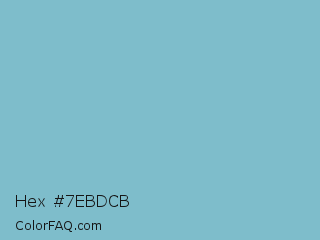 Hex #7ebdcb Color is a light cyan color and the nearest color is Half Baked #85c4cc. Hex code #7ebdcb and RGB value is rgb(126,189,203). In RGB color space, this color is composed of 49% red, 74% green, 80% blue, In CMYK color space, this color is composed of 38% cyan, 7% magenta, 0% yellow , 20% black , In HSL color space, this color has a hue angle of 191° , 43% saturation and 65% lightness.