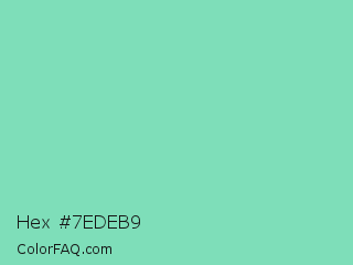 Hex #7edeb9 Color is a light green color and the nearest color is Pearl Aqua #88d8c0. Hex code #7edeb9 and RGB value is rgb(126,222,185). In RGB color space, this color is composed of 49% red, 87% green, 73% blue, In CMYK color space, this color is composed of 43% cyan, 0% magenta, 17% yellow , 13% black , In HSL color space, this color has a hue angle of 157° , 59% saturation and 68% lightness.