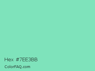 Hex #7ee3bb Color is a light green color and the nearest color is Bermuda #7dd8c6. Hex code #7ee3bb and RGB value is rgb(126,227,187). In RGB color space, this color is composed of 49% red, 89% green, 73% blue, In CMYK color space, this color is composed of 44% cyan, 0% magenta, 18% yellow , 11% black , In HSL color space, this color has a hue angle of 156° , 64% saturation and 69% lightness.