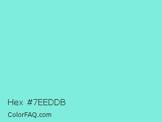 Hex #7eeddb Color is a light cyan color and the nearest color is Riptide #8be6d8. Hex code #7eeddb and RGB value is rgb(126,237,219). In RGB color space, this color is composed of 49% red, 93% green, 86% blue, In CMYK color space, this color is composed of 47% cyan, 0% magenta, 8% yellow , 7% black , In HSL color space, this color has a hue angle of 170° , 76% saturation and 71% lightness.