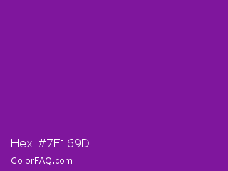 Hex #7f169d Color is a normal purple color and the nearest color is Seance #731e8f. Hex code #7f169d and RGB value is rgb(127,22,157). In RGB color space, this color is composed of 50% red, 9% green, 62% blue, In CMYK color space, this color is composed of 19% cyan, 86% magenta, 0% yellow , 38% black , In HSL color space, this color has a hue angle of 287° , 75% saturation and 35% lightness.