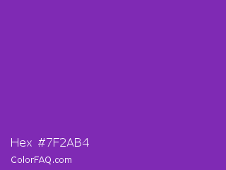 Hex #7f2ab4 Color is a normal purple color and the nearest color is Grape #6f2da8. Hex code #7f2ab4 and RGB value is rgb(127,42,180). In RGB color space, this color is composed of 50% red, 16% green, 71% blue, In CMYK color space, this color is composed of 29% cyan, 77% magenta, 0% yellow , 29% black , In HSL color space, this color has a hue angle of 277° , 62% saturation and 44% lightness.