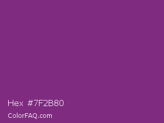 Hex #7f2b80 Color is a normal magenta color and the nearest color is Razzmic Berry Crayola #843179. Hex code #7f2b80 and RGB value is rgb(127,43,128). In RGB color space, this color is composed of 50% red, 17% green, 50% blue, In CMYK color space, this color is composed of 1% cyan, 66% magenta, 0% yellow , 50% black , In HSL color space, this color has a hue angle of 299° , 50% saturation and 34% lightness.