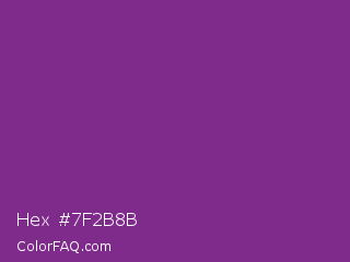 Hex #7f2b8b Color is a normal magenta color and the nearest color is Vivid Violet #803790. Hex code #7f2b8b and RGB value is rgb(127,43,139). In RGB color space, this color is composed of 50% red, 17% green, 55% blue, In CMYK color space, this color is composed of 9% cyan, 69% magenta, 0% yellow , 45% black , In HSL color space, this color has a hue angle of 293° , 53% saturation and 36% lightness.