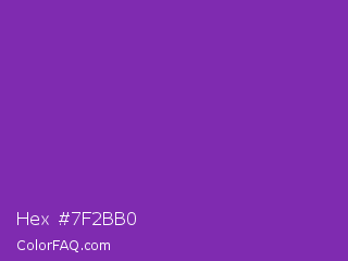 Hex #7f2bb0 Color is a normal purple color and the nearest color is Grape #6f2da8. Hex code #7f2bb0 and RGB value is rgb(127,43,176). In RGB color space, this color is composed of 50% red, 17% green, 69% blue, In CMYK color space, this color is composed of 28% cyan, 76% magenta, 0% yellow , 31% black , In HSL color space, this color has a hue angle of 278° , 61% saturation and 43% lightness.