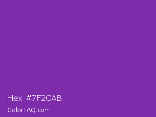 Hex #7f2cab Color is a normal purple color and the nearest color is Grape #6f2da8. Hex code #7f2cab and RGB value is rgb(127,44,171). In RGB color space, this color is composed of 50% red, 17% green, 67% blue, In CMYK color space, this color is composed of 26% cyan, 74% magenta, 0% yellow , 33% black , In HSL color space, this color has a hue angle of 279° , 59% saturation and 42% lightness.
