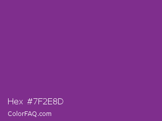 Hex #7f2e8d Color is a normal purple color and the nearest color is Vivid Violet #803790. Hex code #7f2e8d and RGB value is rgb(127,46,141). In RGB color space, this color is composed of 50% red, 18% green, 55% blue, In CMYK color space, this color is composed of 10% cyan, 67% magenta, 0% yellow , 45% black , In HSL color space, this color has a hue angle of 291° , 51% saturation and 37% lightness.