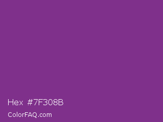 Hex #7f308b Color is a normal magenta color and the nearest color is Vivid Violet #803790. Hex code #7f308b and RGB value is rgb(127,48,139). In RGB color space, this color is composed of 50% red, 19% green, 55% blue, In CMYK color space, this color is composed of 9% cyan, 65% magenta, 0% yellow , 45% black , In HSL color space, this color has a hue angle of 292° , 49% saturation and 37% lightness.