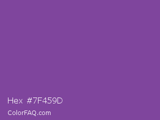 Hex #7f459d Color is a normal purple color and the nearest color is Dark Lavender #734f96. Hex code #7f459d and RGB value is rgb(127,69,157). In RGB color space, this color is composed of 50% red, 27% green, 62% blue, In CMYK color space, this color is composed of 19% cyan, 56% magenta, 0% yellow , 38% black , In HSL color space, this color has a hue angle of 280° , 39% saturation and 44% lightness.