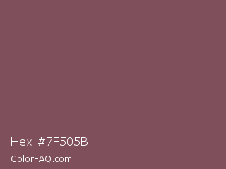 Hex #7f505b Color is a normal red color and the nearest color is Russett #755a57. Hex code #7f505b and RGB value is rgb(127,80,91). In RGB color space, this color is composed of 50% red, 31% green, 36% blue, In CMYK color space, this color is composed of 0% cyan, 37% magenta, 28% yellow , 50% black , In HSL color space, this color has a hue angle of 346° , 23% saturation and 41% lightness.