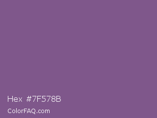Hex #7f578b Color is a normal purple color and the nearest color is Chinese Violet #856088. Hex code #7f578b and RGB value is rgb(127,87,139). In RGB color space, this color is composed of 50% red, 34% green, 55% blue, In CMYK color space, this color is composed of 9% cyan, 37% magenta, 0% yellow , 45% black , In HSL color space, this color has a hue angle of 286° , 23% saturation and 44% lightness.