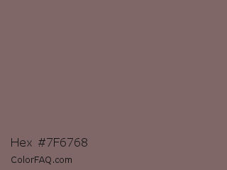 Hex #7f6768 Color is a normal red color and the nearest color is Falcon #7f626d. Hex code #7f6768 and RGB value is rgb(127,103,104). In RGB color space, this color is composed of 50% red, 40% green, 41% blue, In CMYK color space, this color is composed of 0% cyan, 19% magenta, 18% yellow , 50% black , In HSL color space, this color has a hue angle of 358° , 10% saturation and 45% lightness.