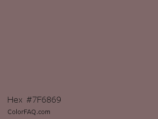 Hex #7f6869 Color is a normal red color and the nearest color is Falcon #7f626d. Hex code #7f6869 and RGB value is rgb(127,104,105). In RGB color space, this color is composed of 50% red, 41% green, 41% blue, In CMYK color space, this color is composed of 0% cyan, 18% magenta, 17% yellow , 50% black , In HSL color space, this color has a hue angle of 357° , 10% saturation and 45% lightness.