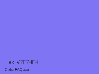 Hex #7f74f4 Color is a light indigo color and the nearest color is Medium Slate Blue #7b68ee. Hex code #7f74f4 and RGB value is rgb(127,116,244). In RGB color space, this color is composed of 50% red, 45% green, 96% blue, In CMYK color space, this color is composed of 48% cyan, 52% magenta, 0% yellow , 4% black , In HSL color space, this color has a hue angle of 245° , 85% saturation and 71% lightness.