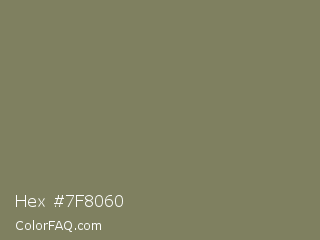 Hex #7f8060 Color is a normal yellow color and the nearest color is Flax Smoke #7b8265. Hex code #7f8060 and RGB value is rgb(127,128,96). In RGB color space, this color is composed of 50% red, 50% green, 38% blue, In CMYK color space, this color is composed of 1% cyan, 0% magenta, 25% yellow , 50% black , In HSL color space, this color has a hue angle of 62° , 14% saturation and 44% lightness.