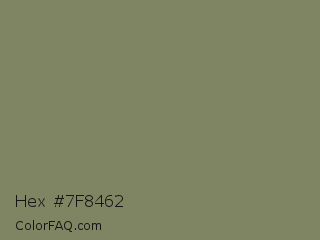 Hex #7f8462 Color is a normal yellow color and the nearest color is Flax Smoke #7b8265. Hex code #7f8462 and RGB value is rgb(127,132,98). In RGB color space, this color is composed of 50% red, 52% green, 38% blue, In CMYK color space, this color is composed of 4% cyan, 0% magenta, 26% yellow , 48% black , In HSL color space, this color has a hue angle of 69° , 15% saturation and 45% lightness.