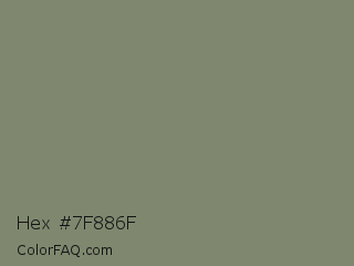 Hex #7f886f Color is a normal green color and the nearest color is Bandicoot #858470. Hex code #7f886f and RGB value is rgb(127,136,111). In RGB color space, this color is composed of 50% red, 53% green, 44% blue, In CMYK color space, this color is composed of 7% cyan, 0% magenta, 18% yellow , 47% black , In HSL color space, this color has a hue angle of 82° , 10% saturation and 48% lightness.