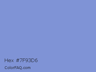 Hex #7f93d6 Color is a light blue color and the nearest color is Vista Blue #7c9ed9. Hex code #7f93d6 and RGB value is rgb(127,147,214). In RGB color space, this color is composed of 50% red, 58% green, 84% blue, In CMYK color space, this color is composed of 41% cyan, 31% magenta, 0% yellow , 16% black , In HSL color space, this color has a hue angle of 226° , 51% saturation and 67% lightness.