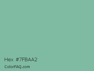 Hex #7fbaa2 Color is a light green color and the nearest color is Acapulco #7cb0a1. Hex code #7fbaa2 and RGB value is rgb(127,186,162). In RGB color space, this color is composed of 50% red, 73% green, 64% blue, In CMYK color space, this color is composed of 32% cyan, 0% magenta, 13% yellow , 27% black , In HSL color space, this color has a hue angle of 156° , 30% saturation and 61% lightness.