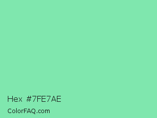 Hex #7fe7ae Color is a light green color and the nearest color is Algae Green #93dfb8. Hex code #7fe7ae and RGB value is rgb(127,231,174). In RGB color space, this color is composed of 50% red, 91% green, 68% blue, In CMYK color space, this color is composed of 45% cyan, 0% magenta, 25% yellow , 9% black , In HSL color space, this color has a hue angle of 147° , 68% saturation and 70% lightness.