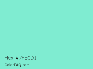 Hex #7fecd1 Color is a light cyan color and the nearest color is Riptide #8be6d8. Hex code #7fecd1 and RGB value is rgb(127,236,209). In RGB color space, this color is composed of 50% red, 93% green, 82% blue, In CMYK color space, this color is composed of 46% cyan, 0% magenta, 11% yellow , 7% black , In HSL color space, this color has a hue angle of 165° , 74% saturation and 71% lightness.