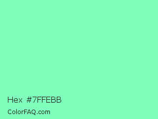 Hex #7ffebb Color is a light green color and the nearest color is Aquamarine #7fffd4. Hex code #7ffebb and RGB value is rgb(127,254,187). In RGB color space, this color is composed of 50% red, 100% green, 73% blue, In CMYK color space, this color is composed of 50% cyan, 0% magenta, 26% yellow , 0% black , In HSL color space, this color has a hue angle of 148° , 98% saturation and 75% lightness.