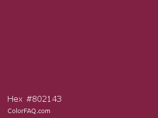 Hex #802143 Color is a normal rose color and the nearest color is Pansy Purple #78184a. Hex code #802143 and RGB value is rgb(128,33,67). In RGB color space, this color is composed of 50% red, 13% green, 26% blue, In CMYK color space, this color is composed of 0% cyan, 74% magenta, 48% yellow , 50% black , In HSL color space, this color has a hue angle of 339° , 59% saturation and 32% lightness.