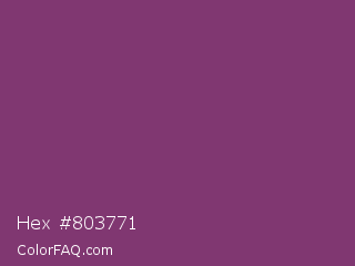 Hex #803771 Color is a normal magenta color and the nearest color is Razzmic Berry Crayola #843179. Hex code #803771 and RGB value is rgb(128,55,113). In RGB color space, this color is composed of 50% red, 22% green, 44% blue, In CMYK color space, this color is composed of 0% cyan, 57% magenta, 12% yellow , 50% black , In HSL color space, this color has a hue angle of 312° , 40% saturation and 36% lightness.