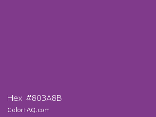 Hex #803a8b Color is a normal magenta color and the nearest color is Vivid Violet #803790. Hex code #803a8b and RGB value is rgb(128,58,139). In RGB color space, this color is composed of 50% red, 23% green, 55% blue, In CMYK color space, this color is composed of 8% cyan, 58% magenta, 0% yellow , 45% black , In HSL color space, this color has a hue angle of 292° , 41% saturation and 39% lightness.