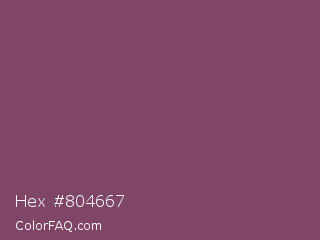 Hex #804667 Color is a normal magenta color and the nearest color is Cannon Pink #894367. Hex code #804667 and RGB value is rgb(128,70,103). In RGB color space, this color is composed of 50% red, 27% green, 40% blue, In CMYK color space, this color is composed of 0% cyan, 45% magenta, 20% yellow , 50% black , In HSL color space, this color has a hue angle of 326° , 29% saturation and 39% lightness.
